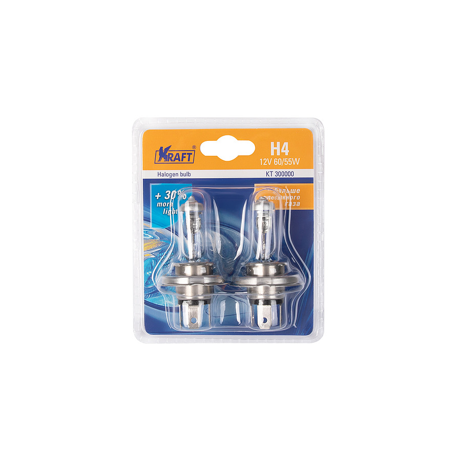 Лампа H4 12v 60/55w (P43t) +30% more light Kraft, 2 шт блистер KRAFT KT 300000