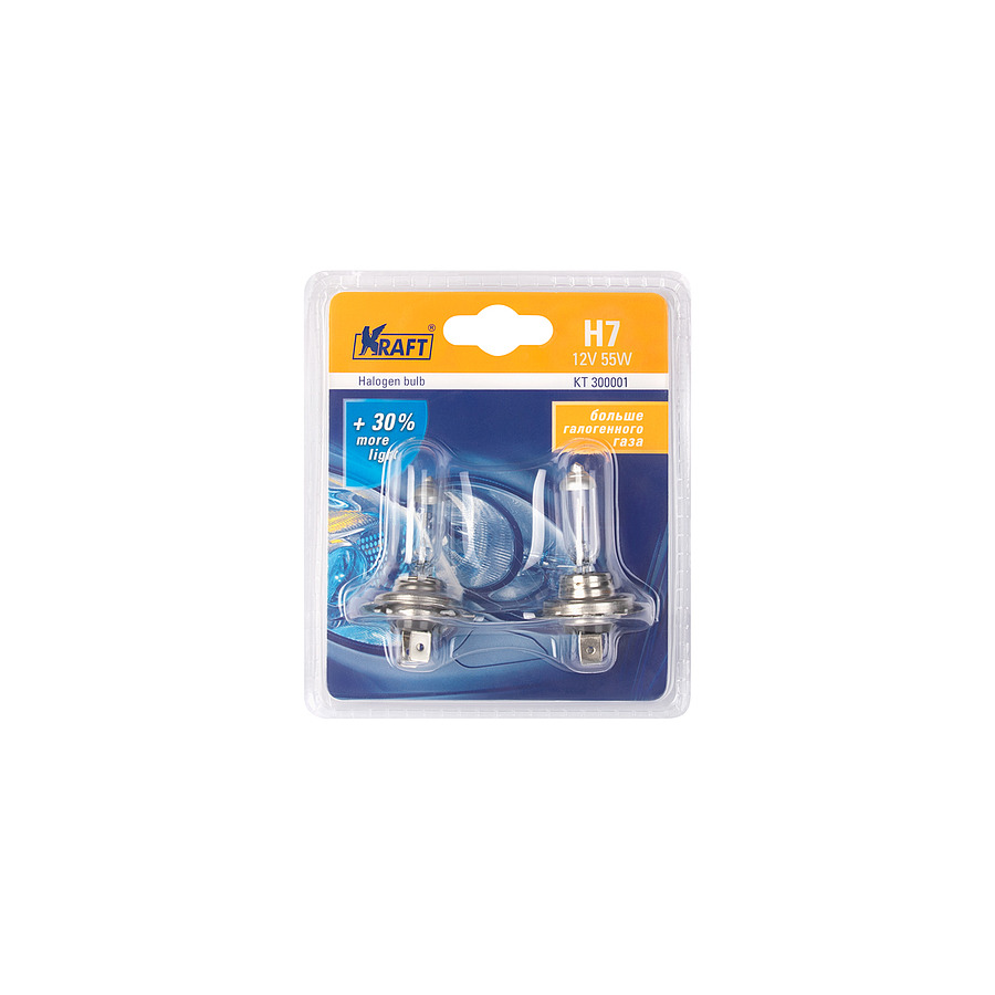 Лампа H7 12v 55w (PX26d) +30% more light Kraft, 2 шт блистер KRAFT KT 300001