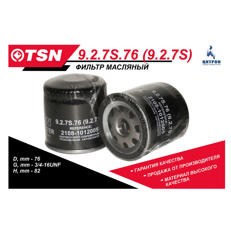 Фильтр масляный 2108-2115 1117-1119 2170 ЛАРГУС ВЕСТА X-RAY ЦИТРОН 9.2.7.76 (9.2.7) отсутсвует
