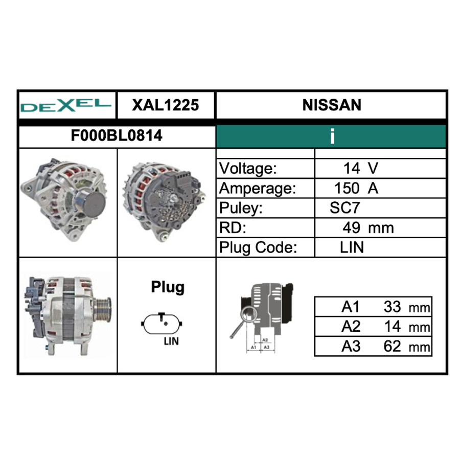 Генератор ЛАДА ВЕСТА DEXEL XAL1225 14V-150A Болгария