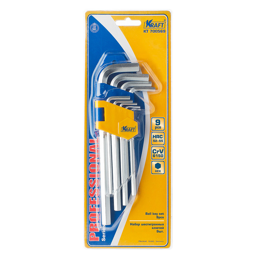 Набор ключей торцевых шестигранных Г-образных 9шт KRAFT KT 700569