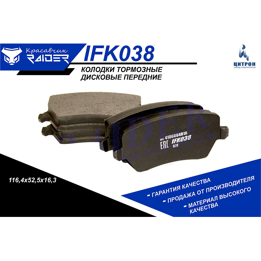 Колодка переднего тормоза ЛАРГУС RENAULT Logan ЦИТРОН RD13046027092 отсутсвует